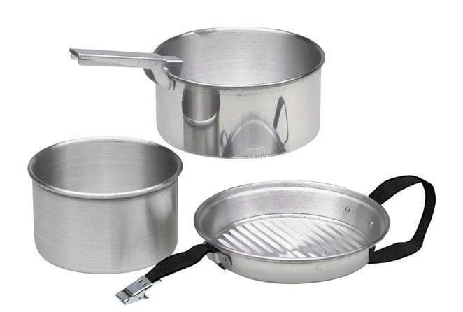 Deze pannenset van Bo-Camp is zowel lichtgewicht als compact. De set is vervaardigd uit aluminium en weegt daardoor maar 425 gram. Doordat de pannen in elkaar passen en de handgreep los is kan de gehele set op een zeer compacte manier weggeborgen worden. Ideaal voor het kamperen dus!