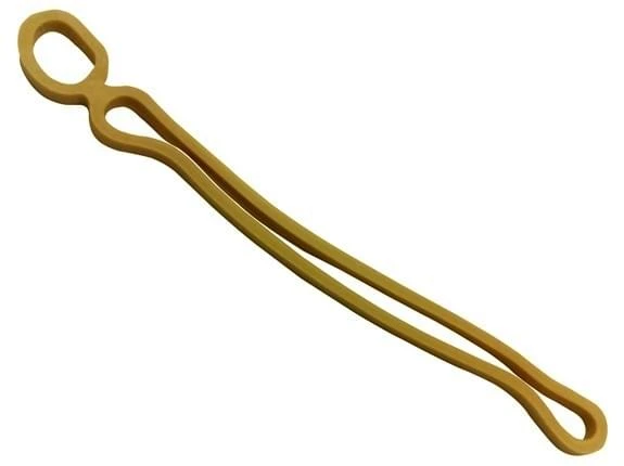 Vouwwagenelastiek, ook wel achtje genoemd, om bijvoorbeeld een raamflap van de vouwwagen vast te zetten.