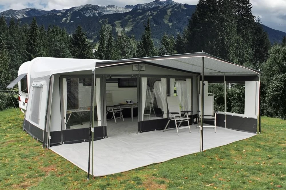 De Genova Premium Staal is een extra stevige voortentluifel van Reda. Met zijn 260 grams Ten Cate Residential dak kan deze seizoens voortentluifel tegen een stootje en staat hij garant voor vele jaren gebruiksgemak. Standaard wordt deze luifel geleverd met uitritsbare zijwanden en een stormset. De stormset bestaat uit 4 stormstokken, 4 verandastangen en 2 daksteunen.